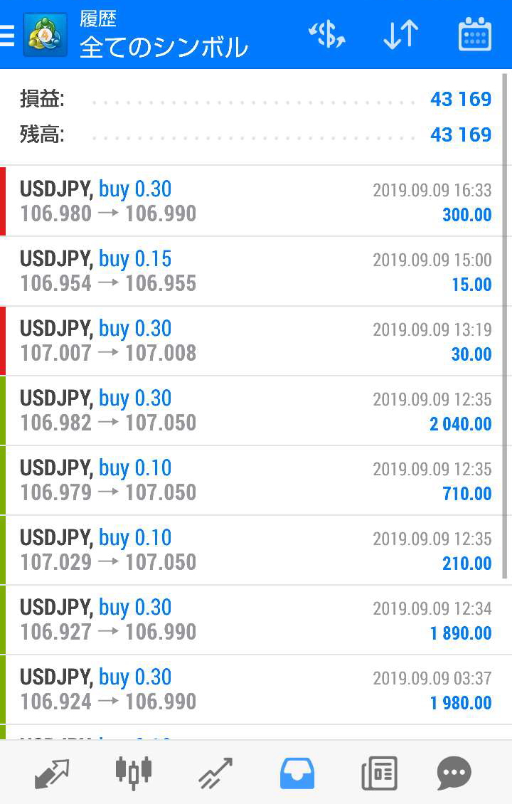 上記の通り、9月09日の損益は+4万3169円でした。